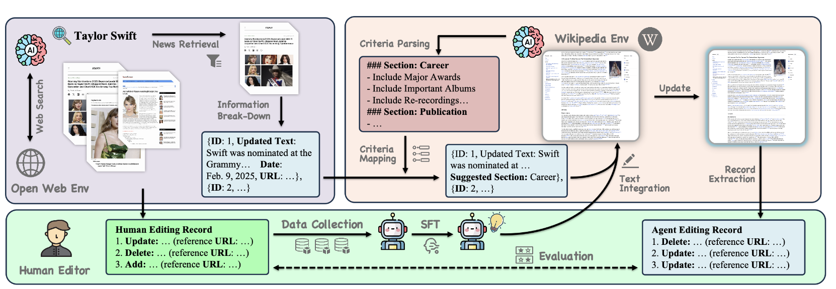 - Agentic Systems: Developed a multi-agent system that autonomously searches and suggests Wikipedia updates from online sources [1].